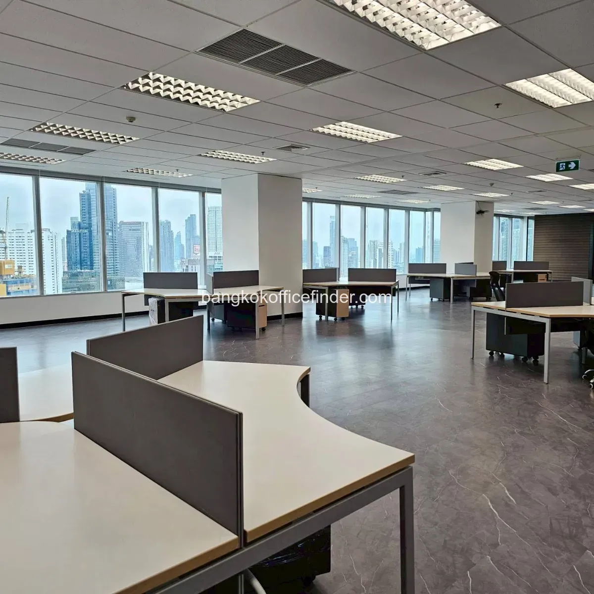 ส่วนใหญ่จะมีเฟอร์นิเจอร์พื้นฐาน เช่น โต๊ะทำงาน เก้าอี้ โต๊ะประชุม และพื้นที่ต้อนรับเบื้องต้น อย่างไรก็ตามรายละเอียดอุปกรณ์แต่ละแห่งอาจแตกต่างกัน ควรตรวจสอบรายการให้ครบก่อนทำสัญญา
